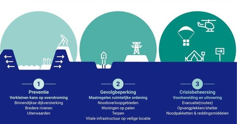 De drie pijlers van meerlaagsveiligheid (bron: onderzoeksrapport ‘Voorbij de dijk’).