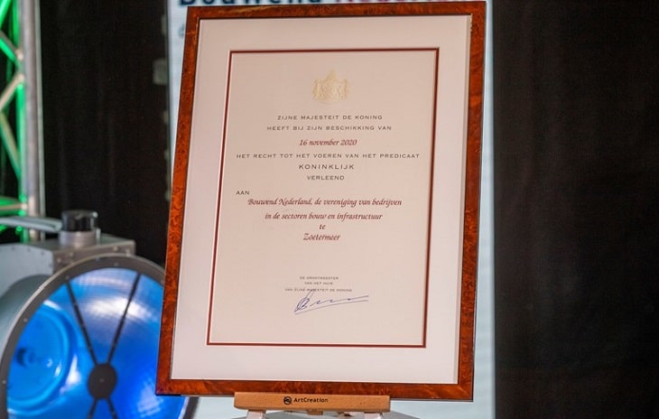 Bouwend Nederland draagt vanaf heden het predicaat ‘Koninklijk’. Op 7 december reikte Jaap Smit, de Commissaris van de Koning in Zuid-Holland, de oorkonde uit die hoort bij het verleende predicaat. Dit gebeurde tijdens het evenement ‘Nu Bouwen aan Morgen’, het congres waar Bouwend Nederland haar 125-jarig bestaan vierde. Bouwend Nederland is vereerd het predikaat ‘Koninklijk’ te mogen toevoegen aan haar naam.