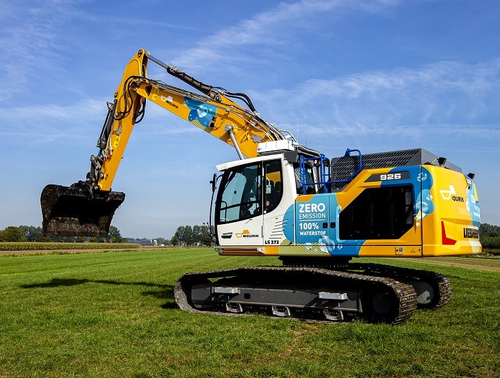 De graafmachine op waterstof die Mourik in eigen beheer ontwikkelde