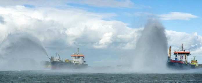 De ceremoniële opening van de verdiepte Nieuwe Waterweg en Botlek werd verricht door minister Cora van Nieuwenhuizen (Infrastructuur & Waterstaat) en Ronald Paul, Chief Operating Officer van Havenbedrijf Rotterdam.