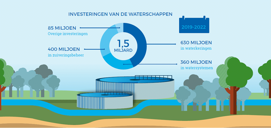 Waterschappen heffen eigen belastingen om te zorgen voor veilige dijken, niet teveel en niet te weinig water en het zuiveren van afvalwater. De waterschappen moeten investeren om in te spelen op ontwikkelingen zoals extremer weer, zeespiegelstijging, bodemdaling, verstedelijking, verzilting en aangescherpte milieunormen. Uit gegevens van de waterschappen blijkt dat zij samen gemiddeld €1,5 miljard per jaar zullen investeren in de periode 2019-2022. De investeringen liggen zo’n €100 miljoen per jaar hoger dan in de plannen die een jaar geleden voor de komende vier jaar werden gemaakt.